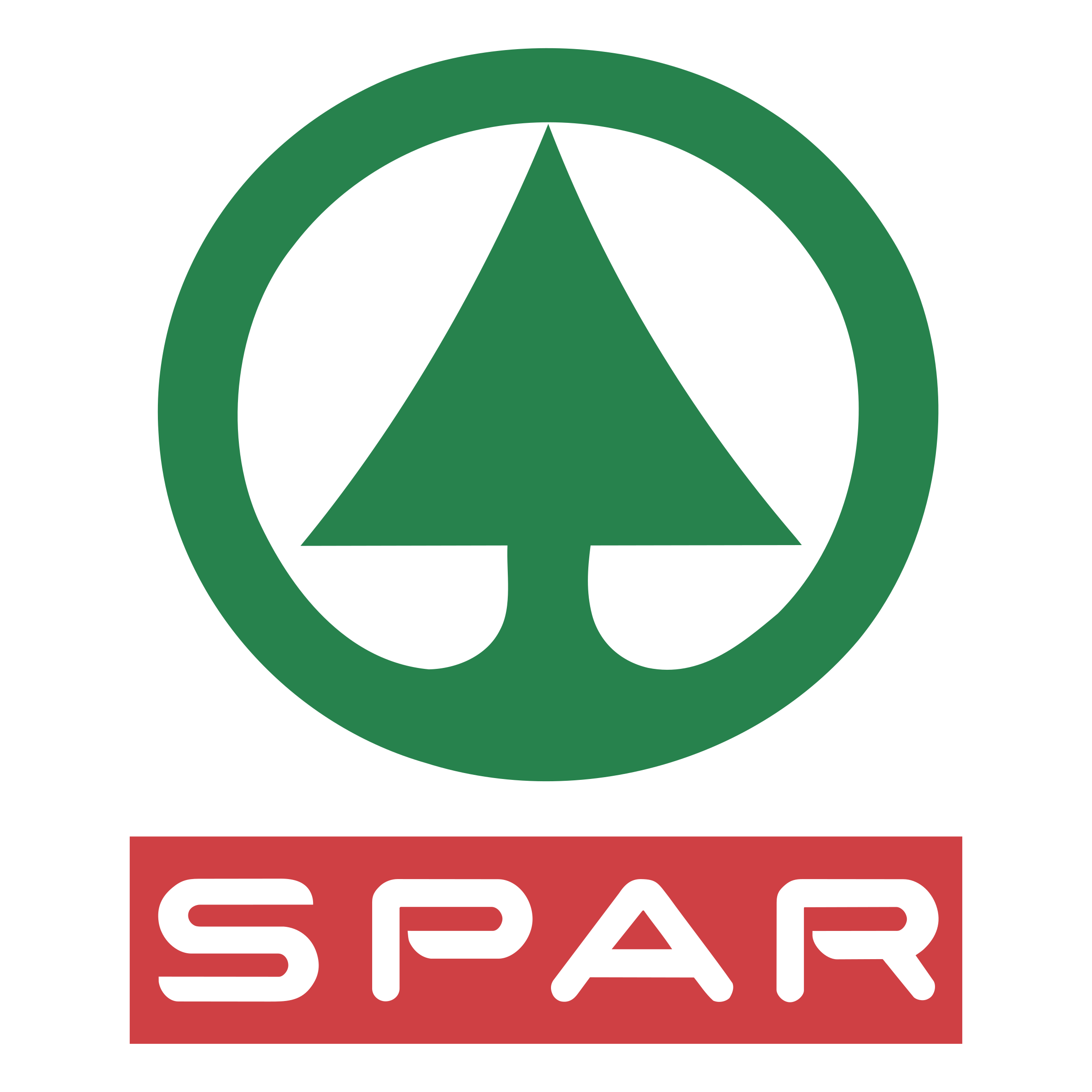 The SPAR logo featuring a green circle with a green arrowhead inside, and the word 'SPAR' in white uppercase letters on a red background below.